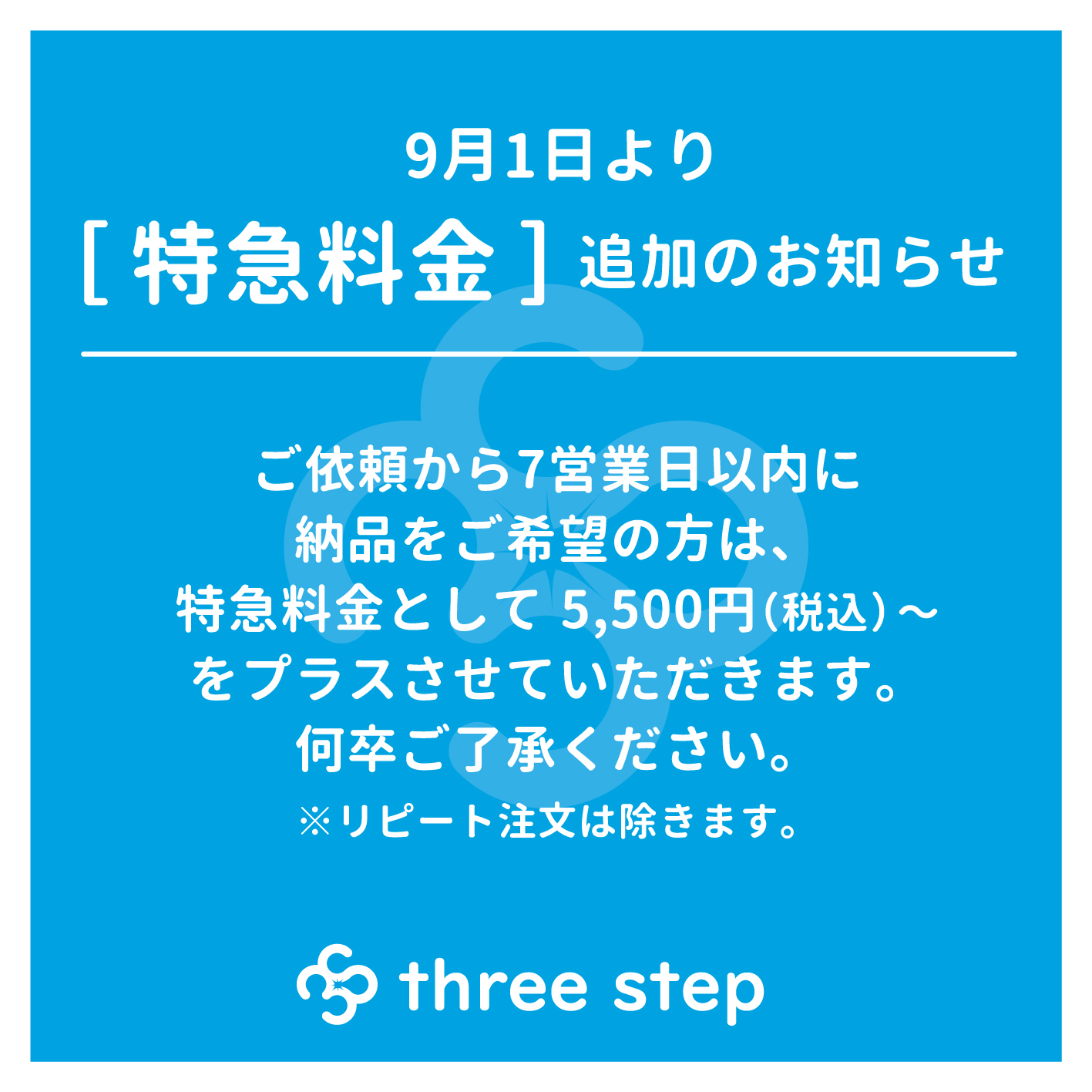 ご依頼から7営業日以内に納品をご希望の場合は、特急料金として 5,500円(税込)〜をプラスさせていただきたく存じます。